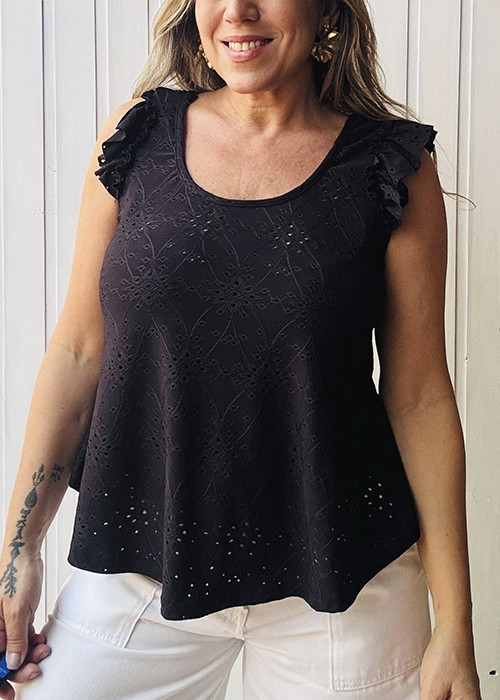Remera evasé broderie